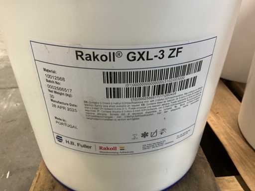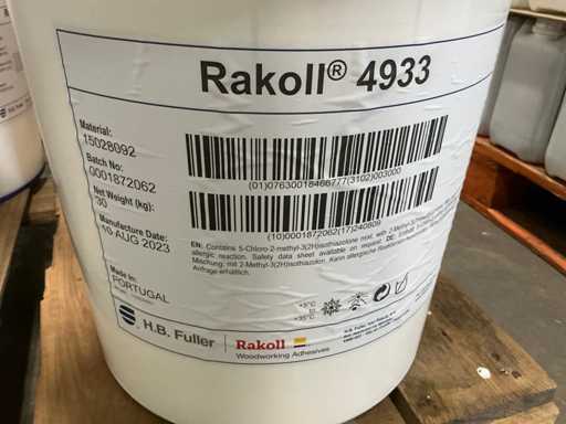 2x Rakoll 4933 lijm 30 kg; 3x Rakoll GX-3 ZF lijm 30 kg; waarvan 1x emmer aangebroken
