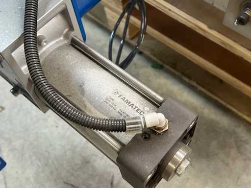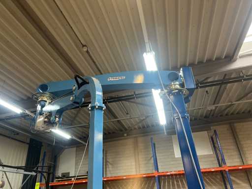 Besturing: pneumatisch met bedieningspaneel • Uitgerust met grijper / opnamekop voor til- en positioneertaken • Geschikt voor industriële assemblage of machineondersteuning • Bevestigd op stabiele stalen kolom met draaibare arm
