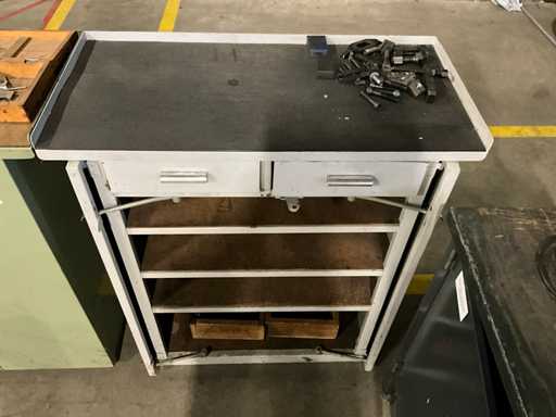 Voorzien van 2 laden en 3 legborden afsluitbaar d.m.v. 2 deuren.