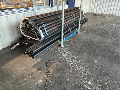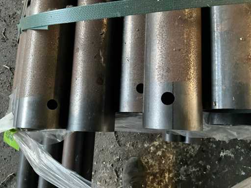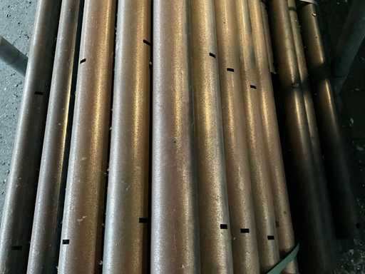 Diameter 70 mm, wanddikte 2,9 mm, totaal circa 100 stuks, waarvan circa 8 stuks lengte 3860mm, voorzien van diverse boor en sleufgaten in en met transportjuk