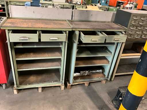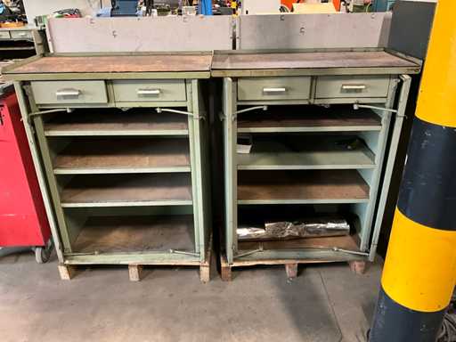 Per stuk voorzien van 2 laden en 3 legborden afsluitbaar d.m.v. 2 deuren.