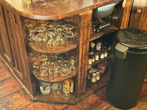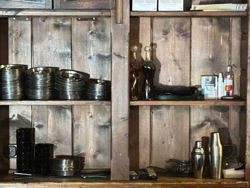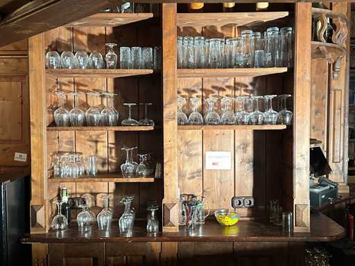 Deze partij bestaat uit 5 gevulde glazenkratten en het glaswerk in de bar. Inclusief de overige losse items in de bar waaronder asbakken en overige barbenodigdheden.