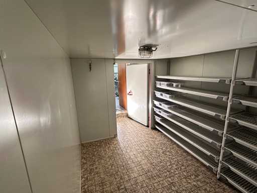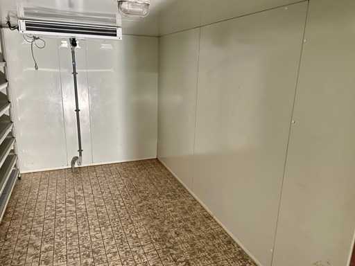 De binnenmaat van deze koelcel is 384x246x196 cm (BxDxH). Exclusief stelling.