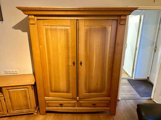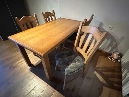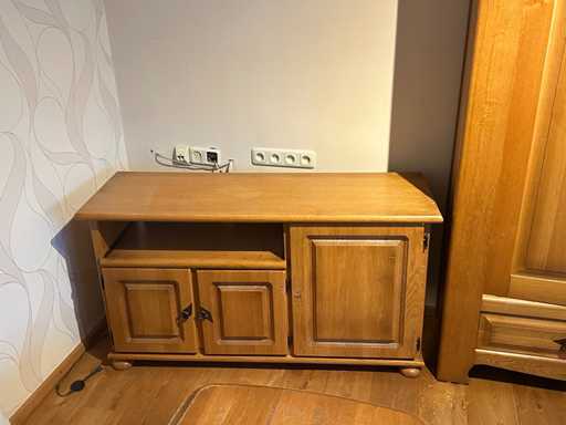 Deze set bestaat uit een buffetkast, tv-meubel, salontafel en eetkamertafel met 4 eetkamerstoelen. Afmeting kast is 167x58x196 cm.