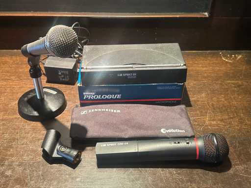 Deze set bestaat uit een Spirit DM-01 microfoon met zender en een Shure Prologue microfoon.