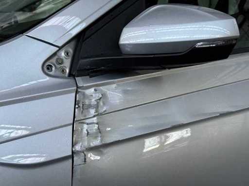 Gebruikerssporen/-schades en slijtage rondom naar leeftijd/km-stand. Deuk in de Linker voor portier.
