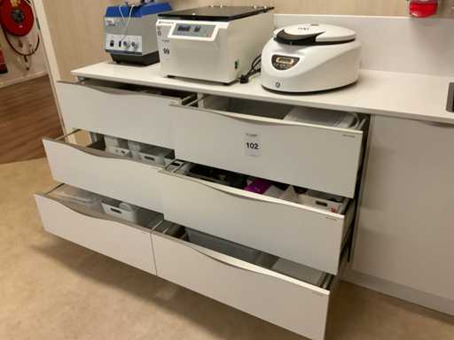Inhoud van aanrechtblok bestaande uit diverse medische benodigdheden.