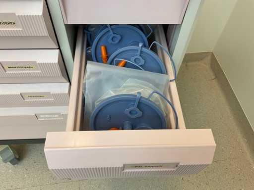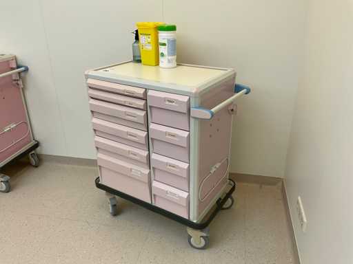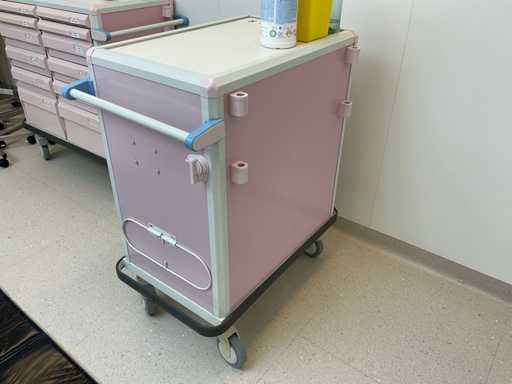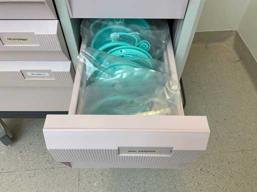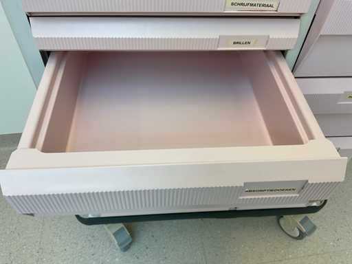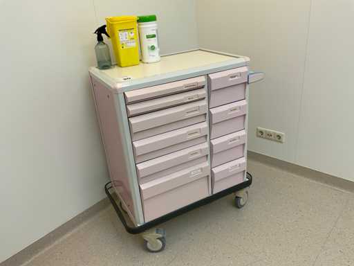 Verrijdbare instrumenten kar voorzien van 10 laden met inhoud