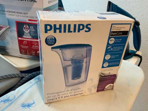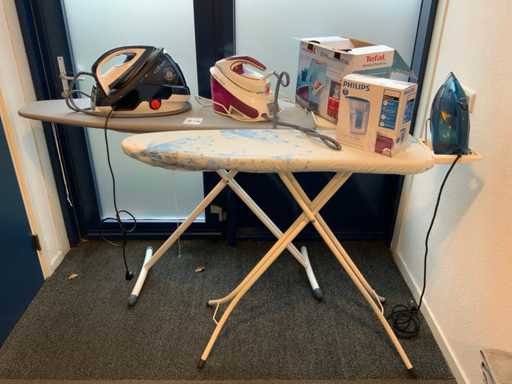 Bestaande uit 2 strijkplanken en Tefal pro express care, Tefal express anti-calc, Philips azur advanced