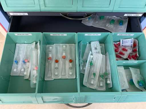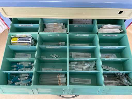 Inhoud bestaande uit o.a. spuiten, naalden, venflons en stoppen