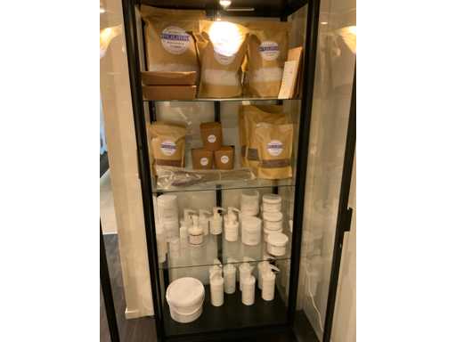 Diverse ongeopende supplementen waaronder magnesium flakes, lavendel en lijnzaad