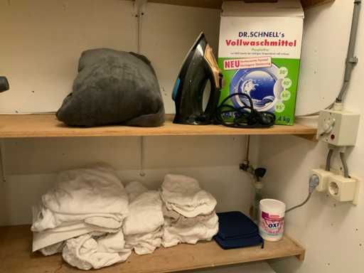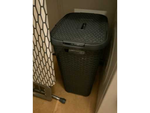 Bestaande uit wasmachine, Curver wasmand, strijkplank, Philips strijkijzer en diverse doeken