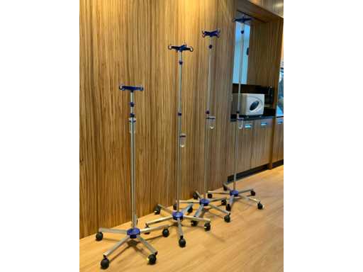 Verrijdbare infuus standaard min hoogte ca. 127 en max. Ca. 211 cm