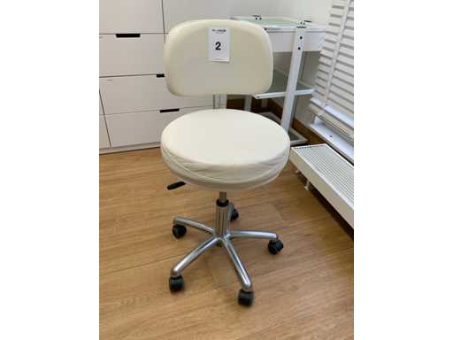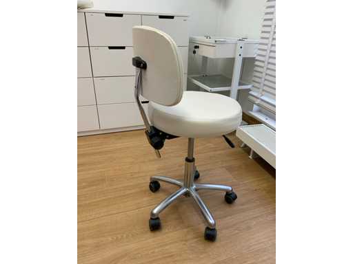 Verrijdbare behandel kruk voorzien van in hoogte verstelbare rugleuning