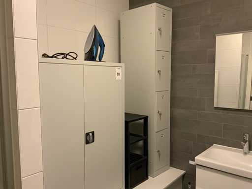 Bestaande uit metalen draaideur kast afm ca. 90x42x120 cm
