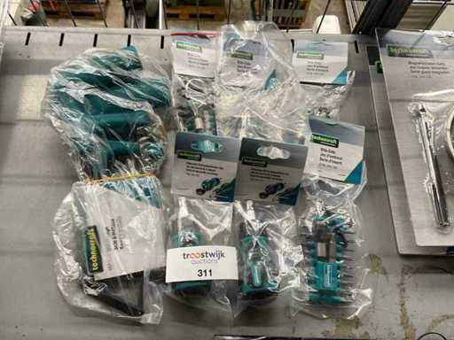 Waaronder 4x bitset, 2x schroevendraaierset, 3x metaal handzaag 150mm