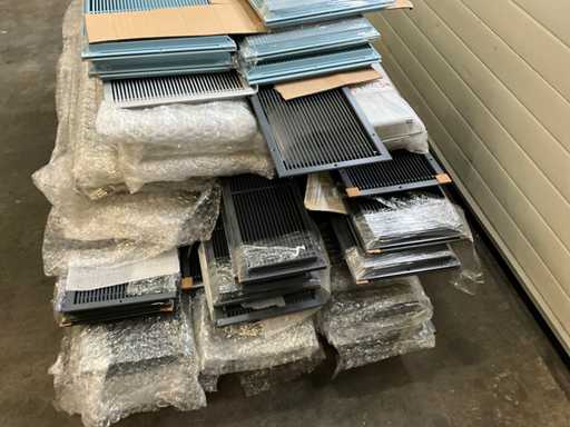 Circa 45-50 stuks ventilatie roosters voor afdekken ventilatie gat, alles ongebruikt en gepoedercoat