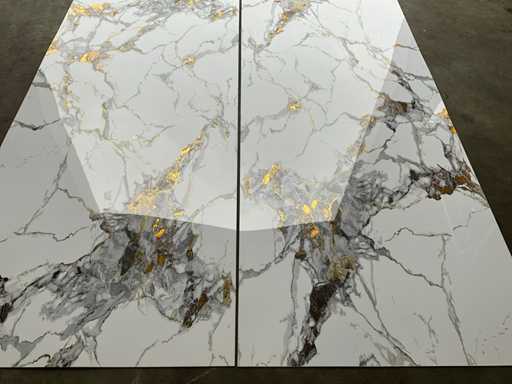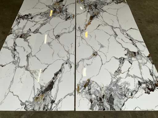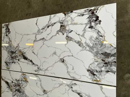 5x Pvc Marmer look paneel, met gouden ader, Geschikt voor; badkamers, toiletruimte,keuken of cinewall. eenvoudig snijbaar met mes, ongebruikt