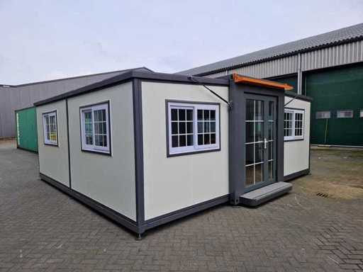 Voorzien van geisoleerd dak en wanden, keuken met onder en bovenkant kasten, badkamer met grote douche, wastafel met spiegelkast, toilet, visgraat vinyl vloer, ventilator, 2 slaapkamers, iedere ruimte voorzien van stopcontacten en verlichting, kunststof kozijnen met dubbel glas, alle deuren voorzien van slot, volledig afsluitbaar, alle aansluiting voor riolering, water aan en afvoer en elektra gereed om aan te sluiten, exterieur voorzien van kunststof houtlook panelen, transportmaat 5850x2200x 2550 mm, ongebruikt bouwjaar 2025