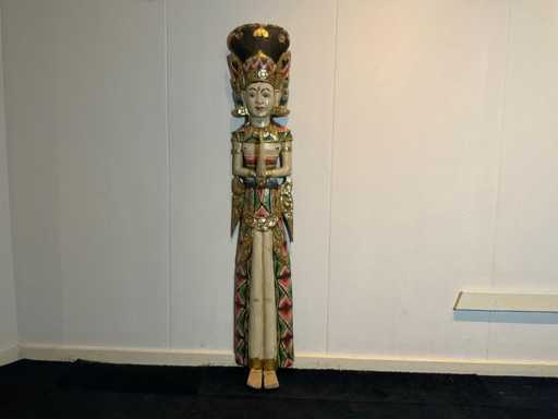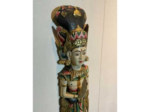 Balinees handgesneden gepolychromeerd beeld van een tempelwachter