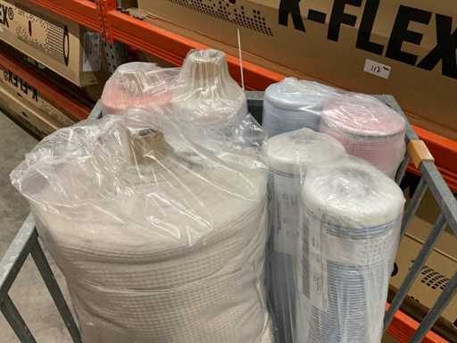 ca. 50m per rol, div. dessins, excl. rolcontainer en spanband.