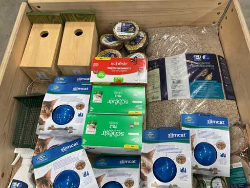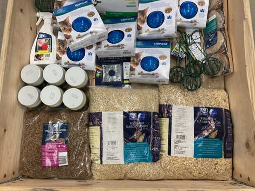 - o.a. kattenvoer, katten speelgoed, vogelvoer, vogelhuisjes, etc.