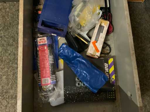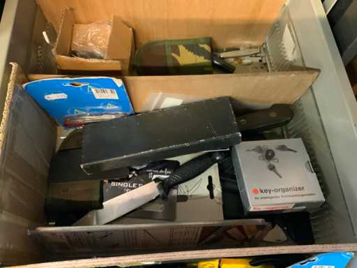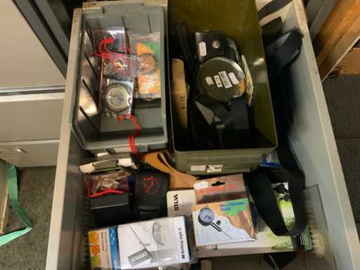 Afmeting kast 47,5x70x135cm met inhoud waaronder messen kompassen en roeidollen (excl. wat er bovenop ligt)