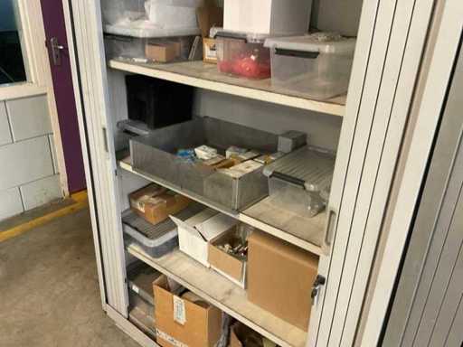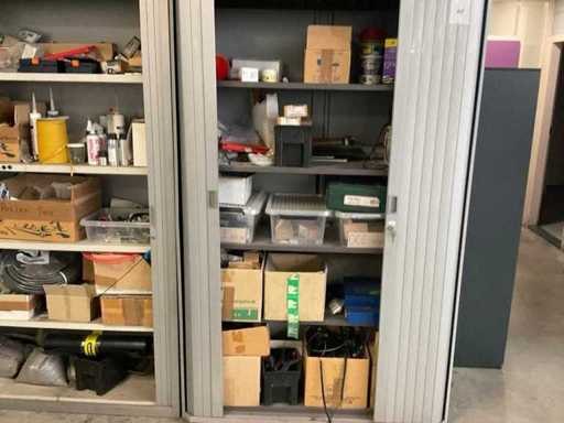 w.o. bouten; kettingen; elektra; gereedschap; klemmen etc.; incl. (3x) schuifdeurkast