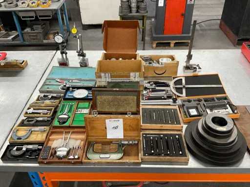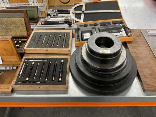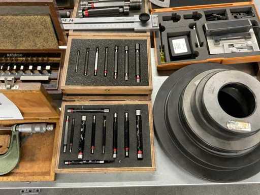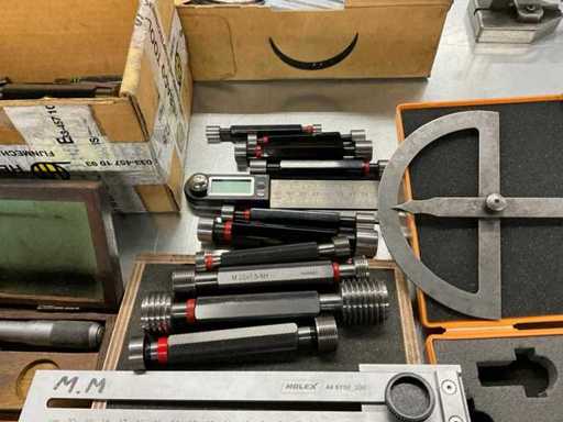w.o. draadkalibers; buitenmaat micrometers; Gladring kalibers, 1 universele gradenboog, eindmaten set