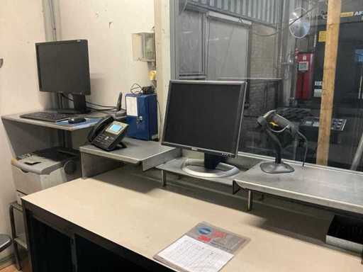 Waaronder “Ahrend” bureau, “Ahrend” bureaustoel, archiefkast met inhoud, monitoren, printer, computer-randapparatuur en decoratiematerialen; desktops niet inbegrepen
