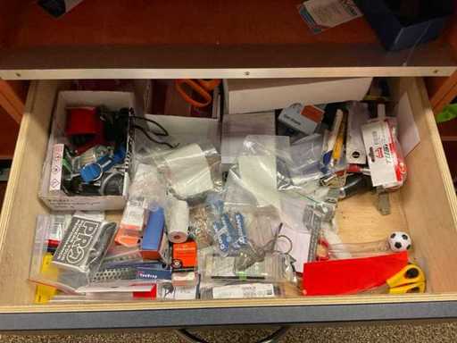 Inhoud verkoopbalie w.o. fietsonderdelen, verkoopmateriaal en aanverwanten, exclusief balie