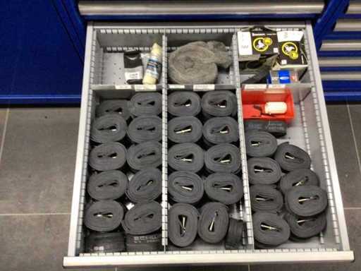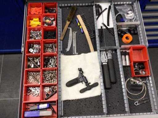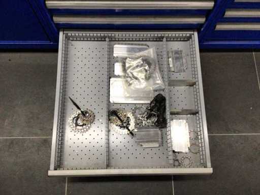 Partij fiets onderdelen in acht laden, exclusief kast.