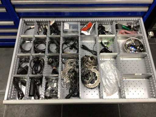 Partij fiets onderdelen in acht laden, exclusief kast