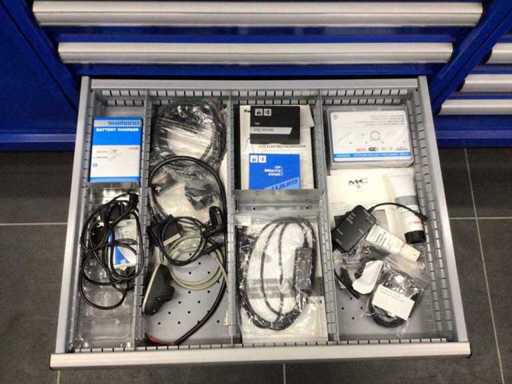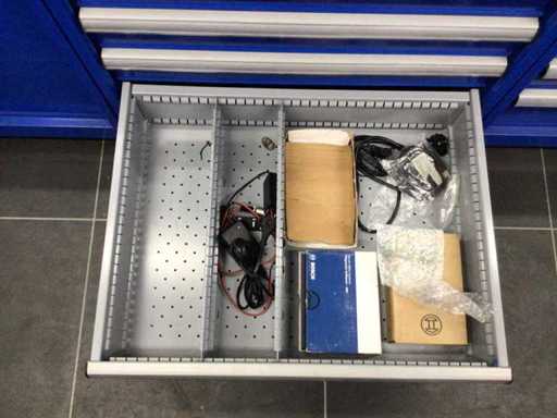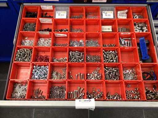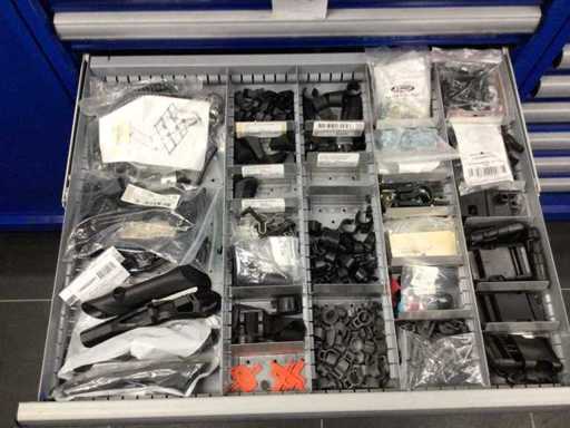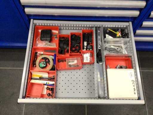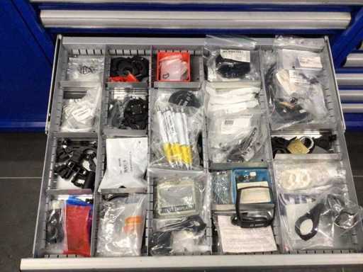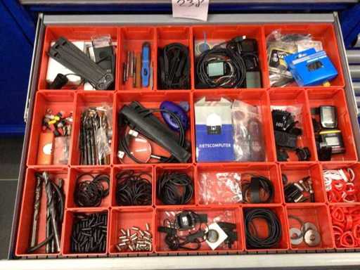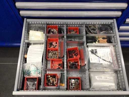 Partij fietsonderdelen in 8 laden, exclusief kast
