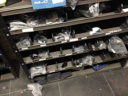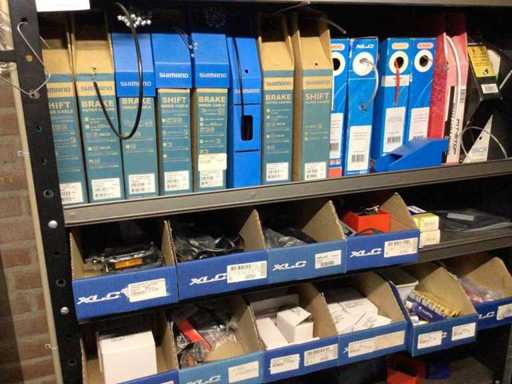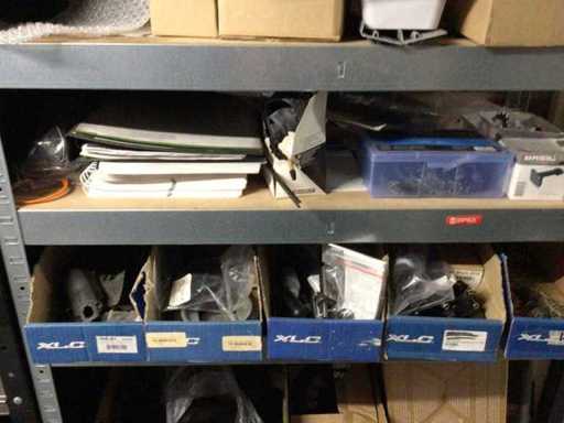 Partij fiets onderdelen in twee kasten, inclusief kasten