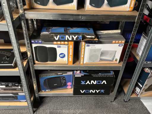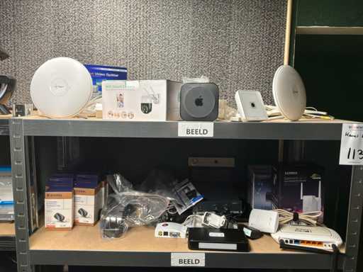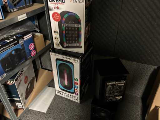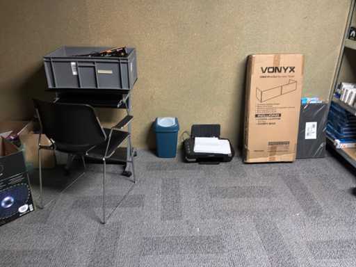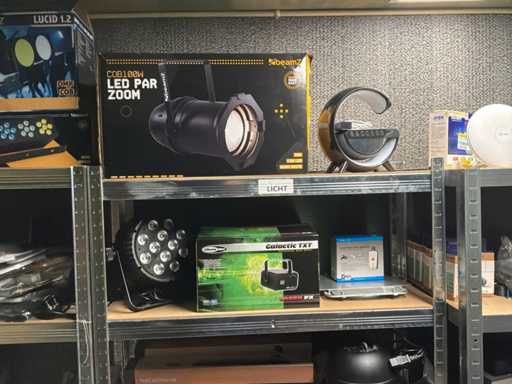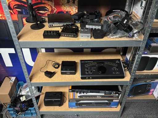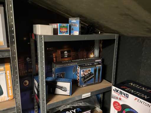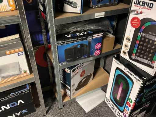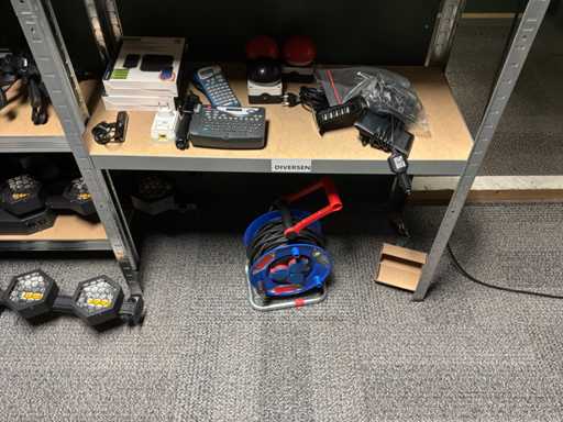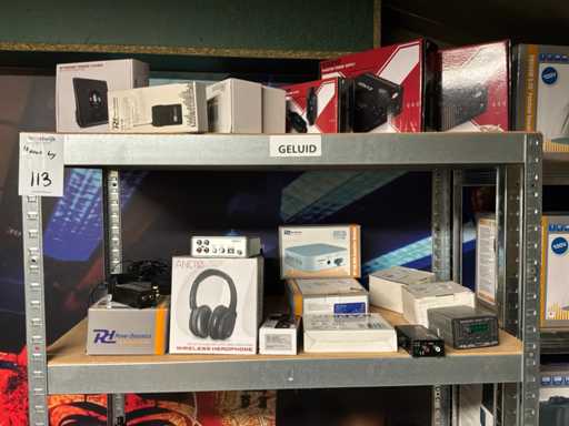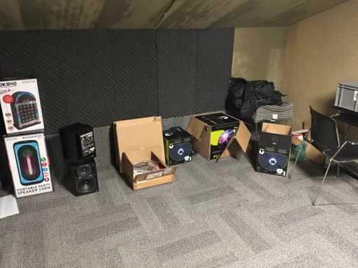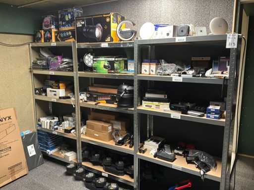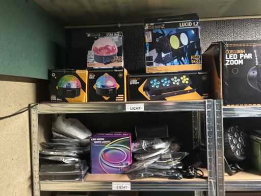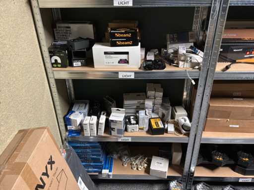 Waaronder onder andere: versterker, usb speler, DI, koptelefoon, shoitbox, speakers, microfoons, spiegelbollen, ledverlichting, ledpar, feestverlichting, switchpanels, discoverlichting, DMX apparatuur, accespoints, AppleTalk, diverse elektronica.