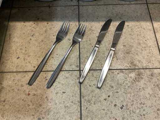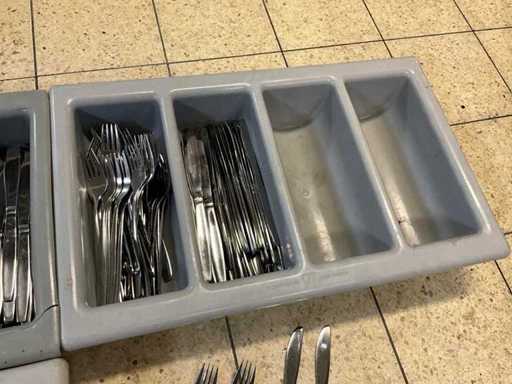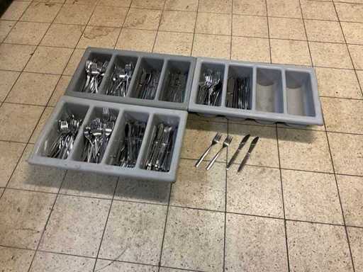 250 x vork; 250 x mes; niet identiek; inclusief 3 bestekbakken.