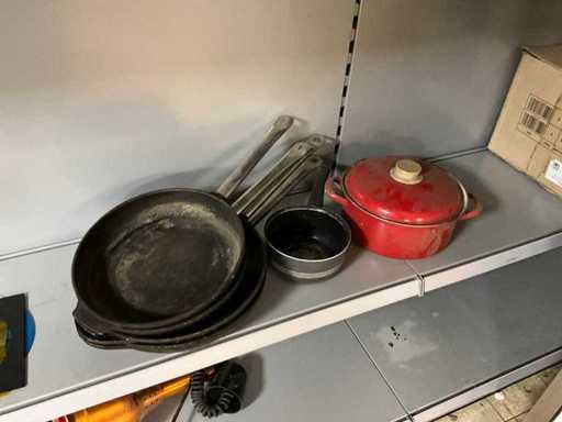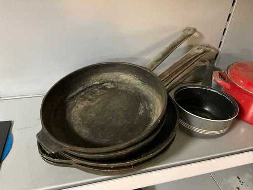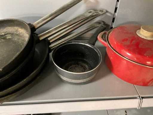 5 x steelpan, 1 x kookpan met deksel.