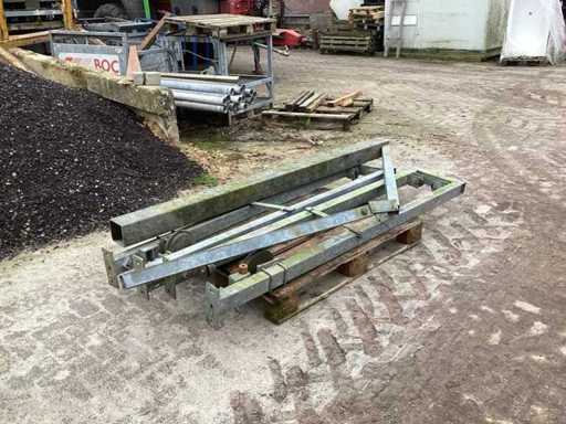 Voorzien van; 2 hekken van 6 meter; vrije doorgang +- 8 meter; hoogte hek 1820 mm; 2 geleiders; diverse onderdelen