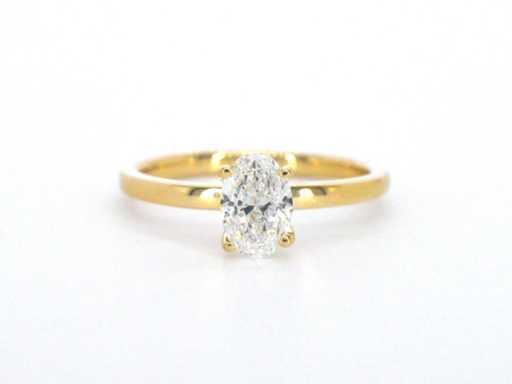 Gouden solitair ring met een 1.00 carat ovaal geslepen diamant