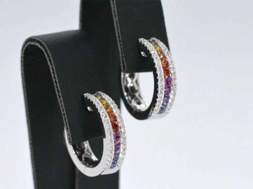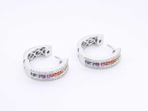 Witgouden oorbellen met multicolour saffieren en diamanten