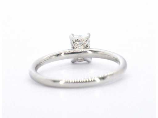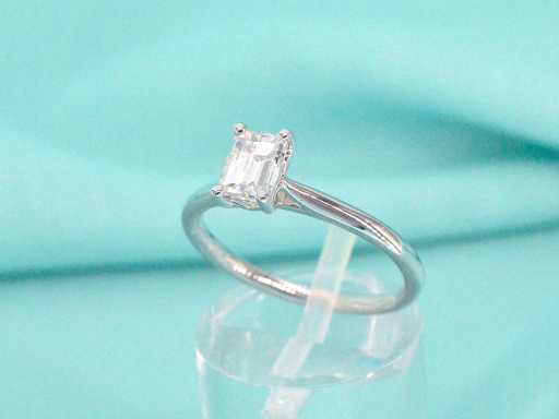 Witgouden ring van 18 carat met een Emerald geslepen diamant van zeer hoge kwaliteit met GIA certificaat