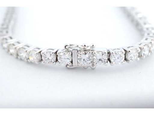 Diamant: Natuurlijk; Slijpvorm: Briljant geslepen; Gewicht (carat): 7.50 carat; Kleur: E-F; Zuiverheid: VS; Slijpkwaliteit: Zeer mooi; Juweel: Armband; Gewicht: 12 gram; Afmetingen/lengte: 17.5 cm; Materiaal: 18K goud (750); Conditie: Nieuw; Verpakking: Luxe sieradendoos; Toelichting: De kwaliteit is overgenomen van het rapport behorend bij item. De waardebepaling is een beoordeling van een gecertificeerde diamantair, gebaseerd op consumentenprijzen.; Consumentenprijs: € 38.290,-