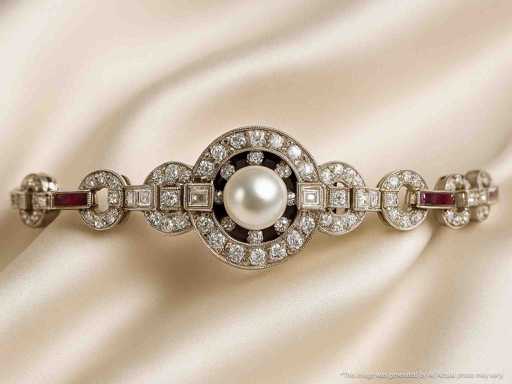 Art-Deco armband met goud en platina, en natuurlijke diamanten en robijnen