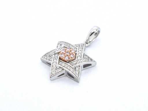 Davidster hanger met roze en witte diamanten