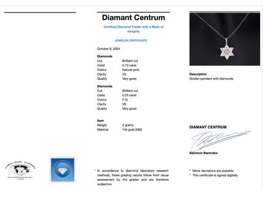 Diamant: Natuurlijk; Aantal: 7 stuks; Slijpvorm: Briljant geslepen; Gewicht (carat): 0.10 carat; Kleur: Natuurlijke roze; Zuiverheid: VS; Slijpkwaliteit: Zeer mooi; Diamant (secundair): Natuurlijk; Aantal diamanten: 54 stuks; Slijpvorm: Briljant geslepen; Gewicht (carat): 0.25 carat; Kleur: F-G; Zuiverheid: VS; Slijpkwaliteit: Very good; Juweel: Hanger (excl. ketting); Gewicht: 2 gram; Afmetingen/lengte: 2.1 x 1.5 cm; Materiaal: 14 karaat (585); Conditie: Nieuw; Verpakking: Luxe sieradendoos; Toelichting: De kwaliteit is overgenomen van het rapport behorend bij item. De waardebepaling is een beoordeling van een gecertificeerde diamantair, gebaseerd op consumentenprijzen.; Consumentenprijs: € 1.855,-
