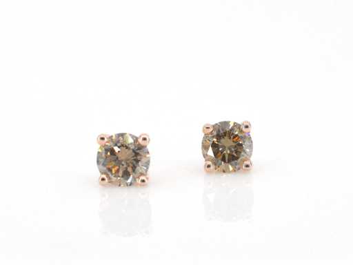 Rosegouden solitair oorbellen met cognac diamanten