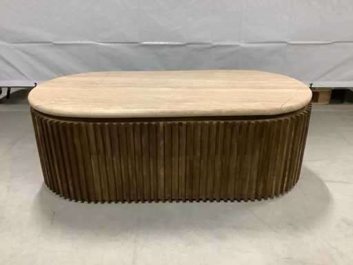 Giga Meubel Sven Ovaal Travertin/Hout Salontafel