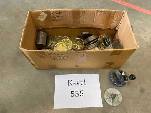 3 blikken ongeveer 144 deksels, 2 pakken van deksels zijn niet geopend