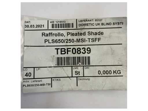 Dometic PLS650/250-MSI-TSFF Geplooide Shade voor Zeilboten - 650 x 250 mm